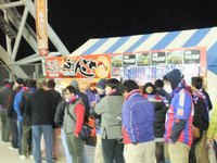 少しでも暖を取ろうと、暖かい食べ物を出す屋台の前には大行列が! 大分名物のだんご汁を食いたかったけど、あまりの行列の長さに断念。くっそう。