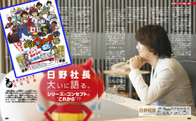 開発元のレベルファイブに取材を敢行。ディレクター本村氏と巡るマル秘ネタ話はもちろん、今後の展開、シリーズのコンセプトを妖怪ブームの仕掛け人・日野社長にも直撃。発売日レポートや攻略記事などと合わせた大特集をお届けします。